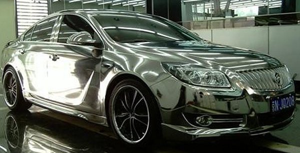 Úgy tűnik, Kínában még nem hoztak jogszabályt a teljes egészében tükröződő karosszéria ellen, így történhetett meg a korábban egyszerűen mattfeketére fóliázott Buick Regal (Opel Insignia helyi gyártású változata) tulajdonosa tükörfóliával vonta be a karosszériát.