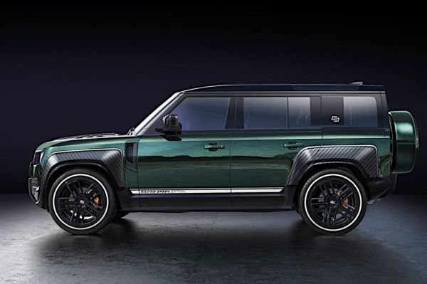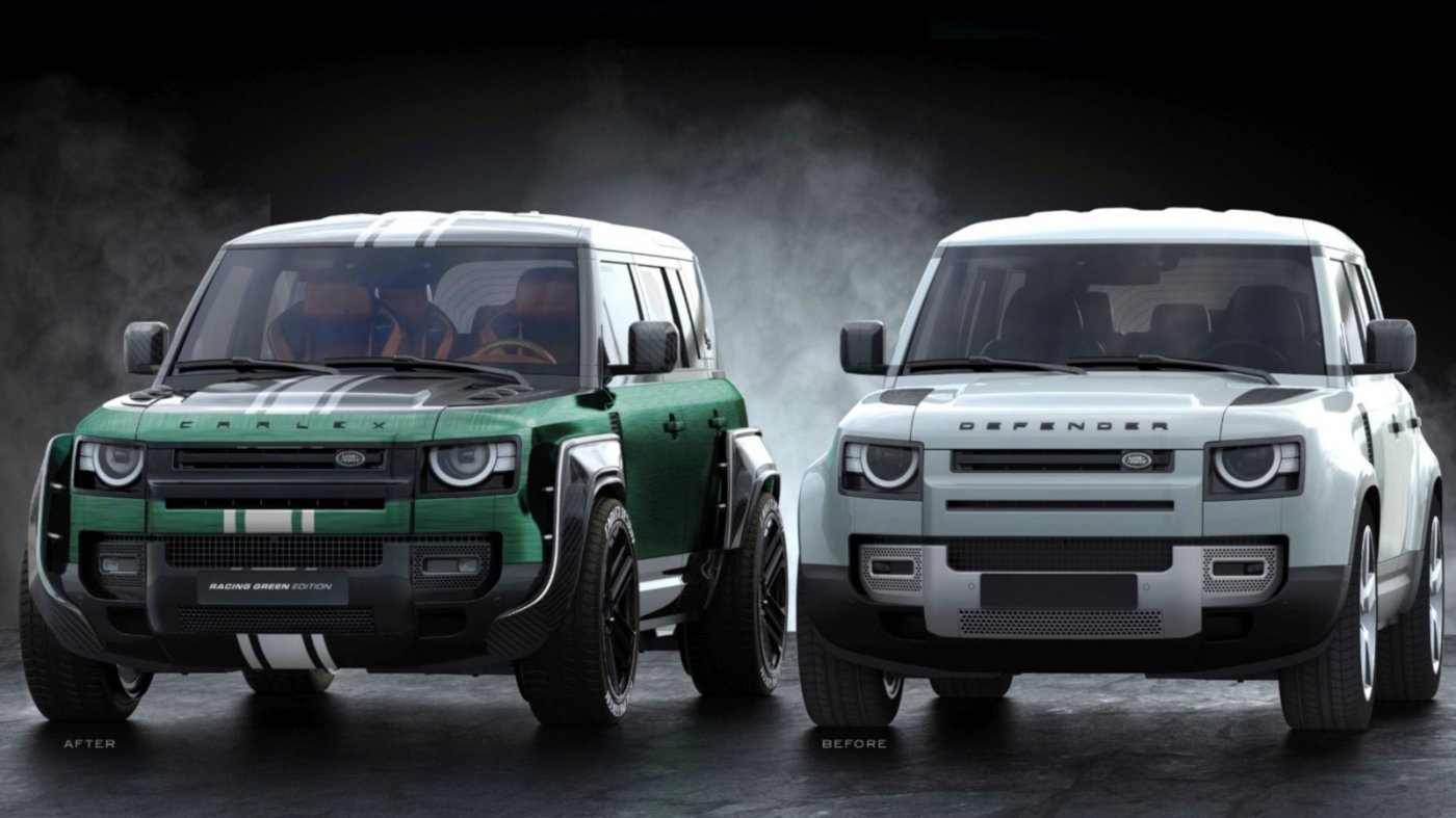 Teljeskörű optikai átalakítást kínál a Land Rover Defenderhez a Carlex Design, amely során a felvitt brit versenyzöld színt kézzel szálhúzott finissel látják el, majd erre még porcelánfedhér csíkot is fényeznek, ami végigmegy az autó tetején is. A külső műanyagelemek többségét karbonból sütött darabokra cserélik, szintén karbonból készülnek a kerékjárat-szélesítések, amelyeket az óriási méretű felnik és a peres abroncsok indokolnak.