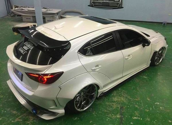Nagynevű japán tuningcégek (Liberty Walk, Rocket Bunny) vadítanak meg legendás autókat olyan stílusban, ahogy a tajvani JGTC műhely nyúlt a nagyon is hétköznapi Mazda3-ashoz. Végre valaki, aki az egyébként is sportos gyári megjelenést elvitte a végsőkig!