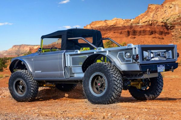 Használtcikkekkel foglalkozó oldalon vásárolta a Jeep azt az 1968-as M-715-ös katonai pickupot, amelyből megépítették az idei Húsvéti Jeep Safari-ra a Five-Quarter elnevezésű járművet. Az alvázat megerősítették, a 3,8 literes hathengeres motor és négyfokozatú kézi váltó helyére kompresszoros Hellcat blokkot építettek 700 lóerővel, amihez háromfokozatú automata csatlakozik. A laprugókat csavarrugókkal váltották ki, a karosszériából csak az első rész maradt meg, igaz, a kabriótető új konstrukció, a többi új gyártású – még a gyári szélcsatornába is elvitték az alkotást, ahol kiderítették, hogy a tégláéval van egy szinten a légellenállási tényező.