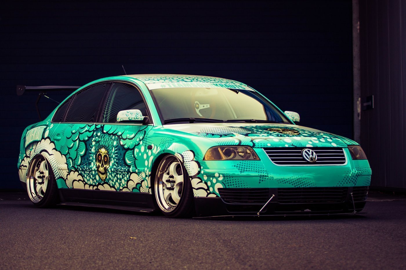 Érdekes átkötés, hogy ez a Passat még nem teljesen készen a budapesti AMTS-en mutatta meg magát először az értő nagyközönség előtt. Egy év munka után ugyanis addigra állt össze Daniel Volkmar autója. A német srác korábban sem szalonállapotban használta, alaposan leültetve, nagy kerekeken gördült vele, de még messze az átlagembereknek elfogadható szinten tartotta a kocsit – amíg össze nem jött a Sauberkraut tuningcsapattal…