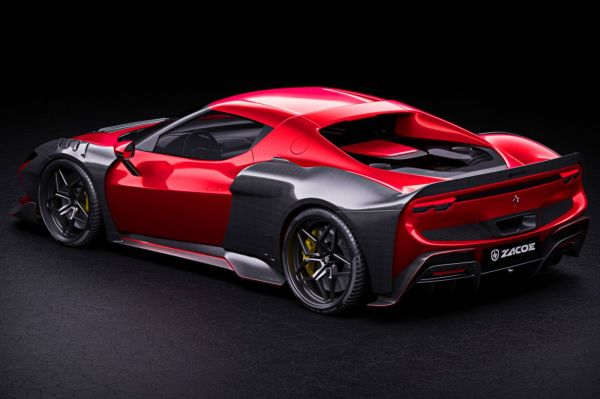 A mai autókhoz képest letisztult a Ferrari 250 LM versenyautó megjelenést, ezt próbálta megidézni a Zacoe Performance a legújabb, a 296 GTB számára készített készletével. Persze ez csak részben sikerült, hiszen nem akarták rontani a modern sportkocsi aerodinamikai teljesítményét, így az új megjelenésen is bőven van szellőzőnyílás és légterelő. Egyelőre csak digitálisan létezik a Ferrari 296 GTZ (Gran Turismo di Zacoe), a képeken látható karbon elemeket retusáltak a kupéra, és így jól látszik, hogy a készlet alkalmazható a 296 Spiderre is. A tajvani Zacoe csak a megjelenést módosítja, a hajtás (830 LE/740 Nm) tuningjáról az autótulajdonosnak kell gondoskodnia.
