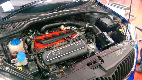 Ráadásul alaposan bele is nyúltak a 2,5 literes, soros öthengeres turbómotorba, többek között Loba LO500+ turbófeltöltőt, Revo Performance Stage 3-as vezérlést, rozsdamentes acélból készített egyedi kipufogórendszert kapott, aminek eredményeként 510 lóerőre emelkedett a teljesítménye. Ráadásul a jármű tömegét is sikerült meglepően alacsonyan tartani, az 1354,5 kg (tele tankkal) annak is köszönhető, hogy az utastér hátuljából mindent kipakoltak, és egy méretes bukókeretet raktak oda.