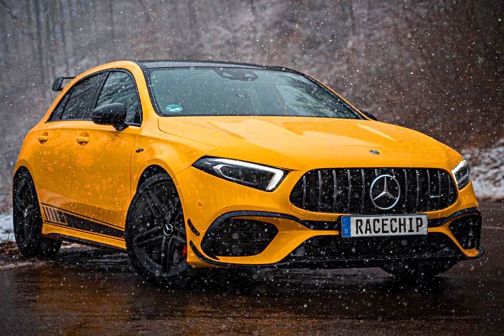 Alaphangon se lehet panaszkodni a teljesítményhiánya a Mercedes-AMG A 45 S-nél, hiszen abban a világ legnagyobb teljesítményű, 421 lóerős 2,0 literes turbómotorja dolgozik. Azonban bőven van még tartalék ebben a blokkban, amire a legjobb bizonyíték a német RaceChip átalakítása, amely mindössze 699 euróért kínálja azt az elektronikát, amely fizikai változtatások nélkül 490 lóerőre és 541 Nm-re emeli a teljesítményt. Az áttételek miatt a 0-100 km/óra gyorsulásnál nincs mérhető változás, de a 0-200 km/óra sprintet már 1 másodperccel hamarabb, 9,1 másodperc alatt letudja az autó. Az alkalmazásból való vezérlés felára 50 euró, egyébként van bemelegedés-mérő is a chiptuningban, hogy csak akkor engedje rá a 490 lóerőt a kerekekre az elektronika, ha már üzemmeleg a gép. A 699 eurós készletnél olcsóbban, 399 euróért adják a teljesítményt 479 lóerőre emelő átalakítást.