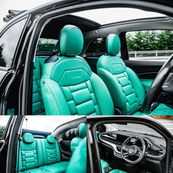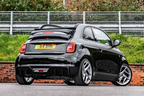 Amíg a gyár szándékosan aranyos megjelenést készített a Fiat 500e-nek, amit jórészt megtartott a minap bemutatott Abarth 500e is, a brit Project Kahn tuningcég szándékosan agresszívvé alakította a külsőt. Ehhez új, a régi Abarthokat idézően púpos első lökhárítót készítettek, a motorháztetőből kivették a fényszóró felső karimáját, mindehhez előre nagy méretű koptatót, hátra diffúzornak látszó betétet adnak. A karosszéria formáját kétszínű fényezéssel hangsúlyozzák, a fényes feketét a mattszürkével kombinálták.