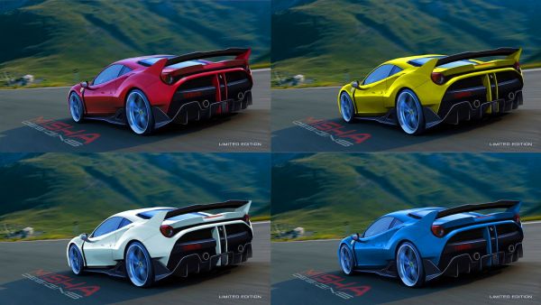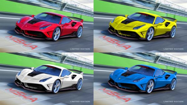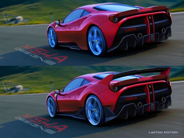 Most készültek el az utód, a 488 GTB számára készített új megjelenéssel, ráadásul rögtön kétféle változatban – igaz, per pillanat még csak virtuálisan léteznek ezek az átalakítások. A normál és a Limited készlet közötti különbség a hátsó légterelő méretében, és a 7,5 centivel szélesebb hátsó nyomtávban keresendők. A látványosabb és minden bizonnyal drágább megjelenésből csak 20 darabot készítenek.