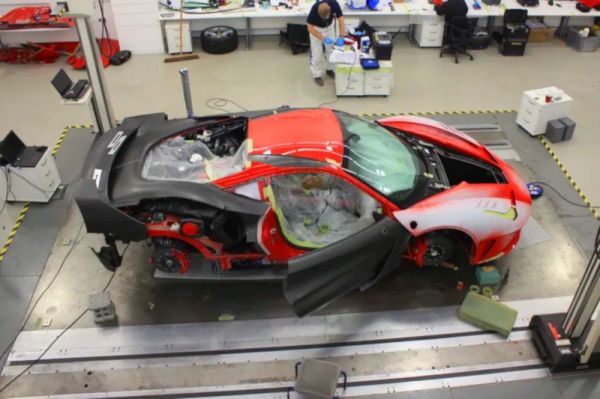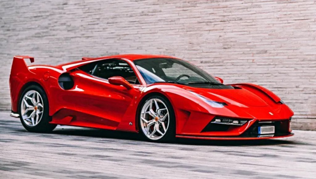 A kiindulási alapot a 488 GTB jelentette, azonban a teljes karosszériát lecserélték új fejlesztésű karbon héjra, amelyen azért a közelmúlt Ferrarijainak vonásai is felfedezhetőek, például az F12 berlinetta hátsója, vagy az FXX K függőleges hátsó szárnyai. Az első légbeömlőkben elhelyezett lámpák a 288 GTO-ra utalnak, míg a motortér-burkolat az F40-est utánozza.