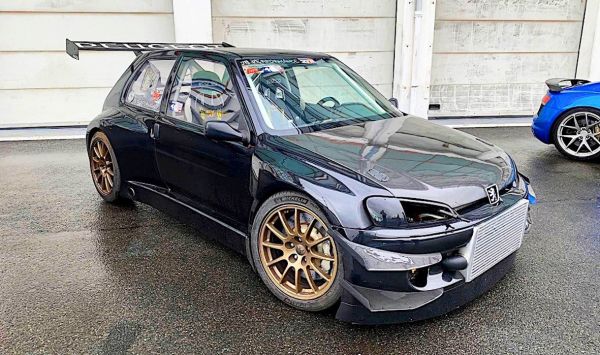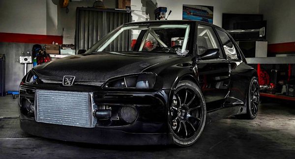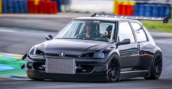 A projekt most, nyolc év után is folyamatos változásban van, de amikor legutóbb mérték, a motor 670 lóerő fölött teljesített a fékpadon, a forgatónyomaték pedig meghaladta a 850 Nm-t. Mindehhez 1030 kilós saját tömeg társul, ami nem egészen egy mázsával nehezebb, mint az eredeti Peugeot 106! Mindennek fényében nem hibáztathatjuk a tervezőt, hogy a hátsó szélvédőbe vágott réseken kivezetett, robusztus alukonzolra hatalmas karbonszárnyat szerelt. A leszorítóerő pontos mértékéről nincsenek mérések, de erős a gyanúnk, hogy az a Peugeot 208 T16 versenyautó állhatott modellt a spoilerhez, amellyel Sébastien Loeb 2013-ban megnyerte a Pikes Peak-i hegyi felfutó versenyt.