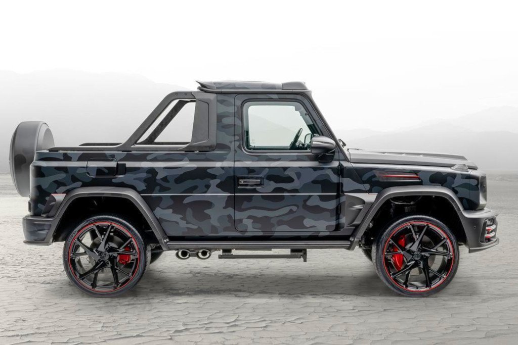 Amíg a Brabus fél méterrel megtoldott tengelytávolsággal készített duplafülkés pickupot az új G-osztály alapján, a Mansory tuningcég az egyszerűbb utat választotta, és egyszerűen levágta az ötajtós kombi hátsó részét. Az egészet aztán Philipp Plein segítségével dísztették, az eredményt pedig Star Trooper Pickupnak nevezték el.