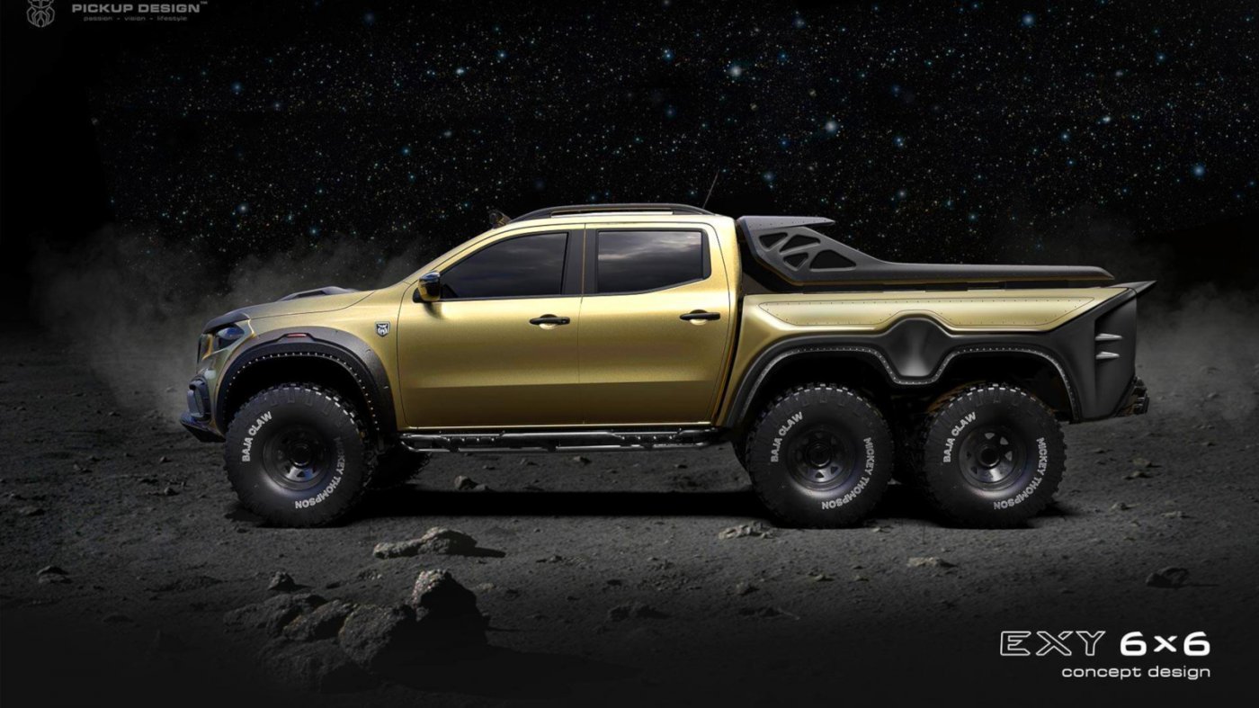 A Carlex Design nevű tuningcég újabban rákattant a pickupokra, és már a Mercedes-Benz X-osztályt is kezelésbe vette, elsőként Maybach-stílusú átalakítást álmodott. Azt még meg sem építették, de máris egy újabb átalakításon dolgoznak, amelynek eredménye egy igazi szörnyeteg lesz: az Exy 6×6 névre hallgató platós.