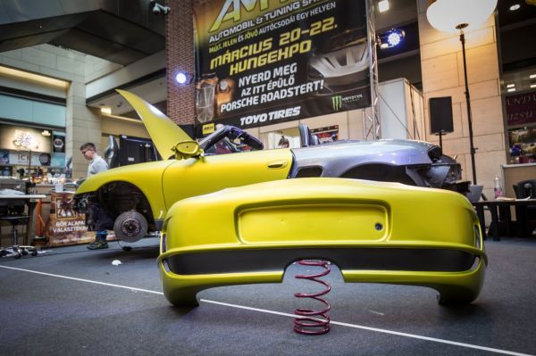 Négy nap alatt építették meg a szerelők a Westend bevásárlóközpontban az itt látható Porsche Boxster S nyereményautót, a teljes külső- és belső átalakuláson kívül a felfüggesztést is átépítették. A szerencsés győztes egyébként 50 ezer Ft értékű üzemanyag-utalványt is kap az autó mellé.