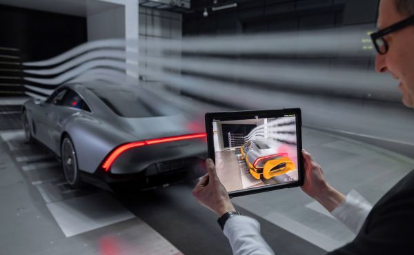 Szabadon lebegő, egy darab hatalmas monitor jelenti a műszerfalat, a 120 centis kijelző 7680×660 pixeles felbontással rendelkezik. Több mint 3000 apró LED adja a megvilágítást, épp csak azok működnek, amelyek a megjelenítéshez kellenek, így a nagy méret ellenére alacsony az energiafogyasztás. A digitális segéd immár arcot is kap, a márka névadójának, Mercedes Jellinek arcképét választották mintául a grafikához, újdonság még, hogy érzelmeket is képes megjeleníteni a hangjában a rendszer. Új szoftvert kellett készíteni a nagy képernyőfelbontás miatt a navigációs rendszerhez, amelynél akár 10 méterig is rá lehet nagyítani a térképre. Az útvonaltervező a topográfia és az időjárási viszonyok (szélirány) alapján ad tippeket a sofőrnek az energiatakarékos haladáshoz. Számos hangszórót használ a hifi, ezeket az utasok füléhez közel helyezték el, az alacsonyabb hangerő okán kevesebb energia kell a működésükhöz, bónuszként nincs az utastér felületeiről visszaverődő hanghullámok miatt minőségromlás sem.