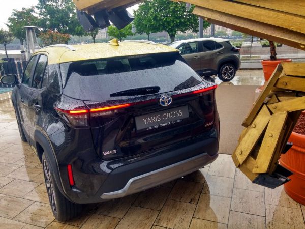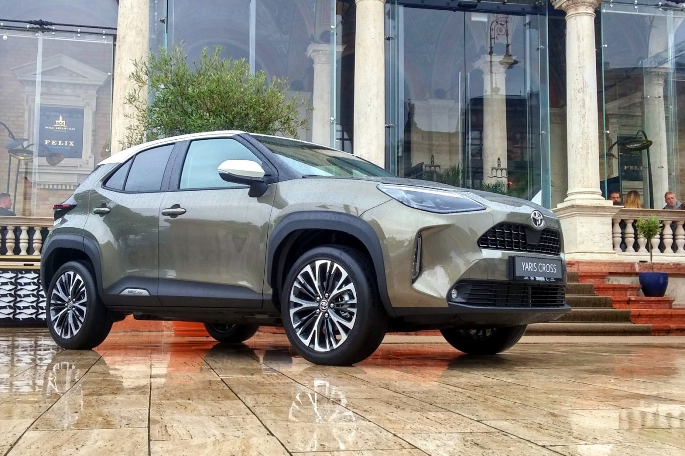 A Yaris kisautó műszaki alapjára felépített, de annál 3 centivel nagyobb hasmagassággal rendelkező Yaris Cross változatlan tengelytávolság mellett 6 centivel nagyobb első-, és 18 centivel nagyobb hátsó túlnyúlást kapott, ránézésre ennél is nagyobb a növekedés, mert kifejezetten magas az orr, amelynek közepén ott trónol a kék hátterű márkajelzés. Nem véletlen, hogy a forgalmazó egy normál és egy Adventure kivitelű hibridet mutatott meg, a várakozások szerint 90% felett lesz majd az öntöltő hibrid hajtás részaránya az értékesítésben, ezen belül a vásárlók 10-20%-a fizet majd be a hátsó villanymotoros i-AWD összkerékhajtásra.