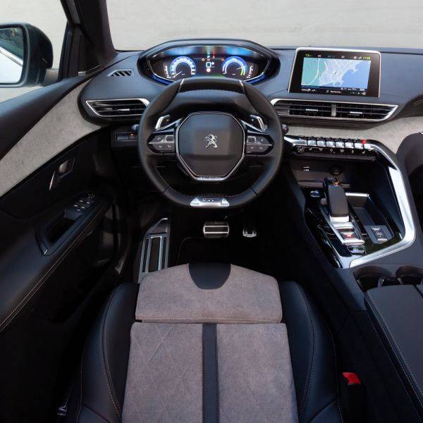 Az elektromos hatótávolságról nehezen tudok nyilatkozni, hiszen azt az előző sofőr(ök) vezetése alapján számolta, de a WLTP-módszer szerint ígért 47-54 km igaz lehet. Beszállás után 29 illetve 32 km-t mutatott a kombi és a kupé kijelzője, de elektromos haladás közben csak nem akart csökkenni a hatótáv, viszont két km hátralevő távolsággal vagy 10 km-t mentem, míg a 0 km megjelenése után is vagy 5 km telt el, mire a benzinmotor életre kelt. Kívülről a bal hátsó sárvédőn elhelyezett tanksapka az újdonság, e mögött rejtőzik az elektromos töltőcsatlakozás. Az i-cockpit műszerfalon a zongorabillentyűknél kell keresni az új kapcsolót, a körbe zárt villám – vajon ezért vették meg az Opelt? – megnyomására jön elő a hibridspecifikus menü, ahol az üzemállapotról, a fogyasztásról (elektromos és benzines külön-külön) lehet tájékozódni.