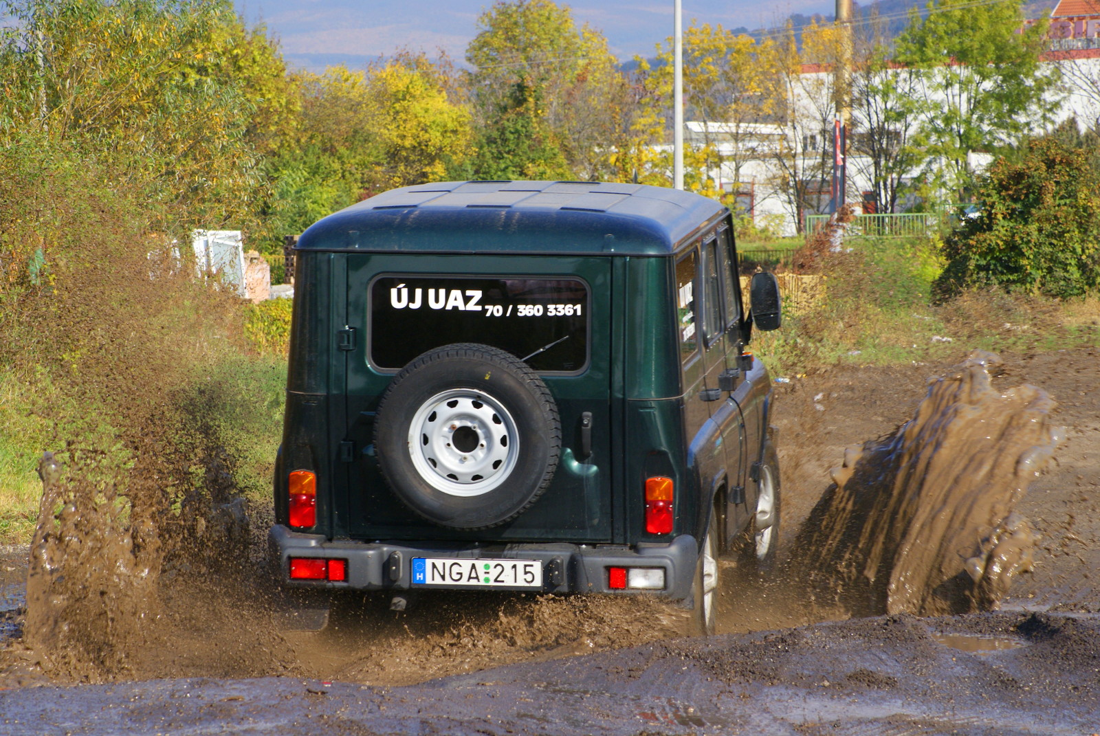 Változatlan a remek terepjáróképesség, ami javarészt a nagy hasmagasságnak, rövid túlnyúlásoknak köszönhető, no meg ott a kapcsolható összkerékhajtás, a merev első-hátsó tengely. Elöl alapfelszerelésként tárcsaféket kap, hátul extra a tárcsafékes tengely. Bence vezette a Huntert, elmondása szerint sokkal rosszabbra számított, könnyen működtek a kezelőszervek, egyedül a kormányt kellett sokat tekerni. A fröcskölős fényképek készítésekor – amikor ugrott is az autó – nem érezte, hogy különösebb probléma lenne, csak a zaj volt nagy, ahogy a be nem kapcsolt övek és a hozzájuk tartozó övcsatok repkedtek.