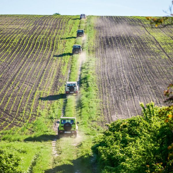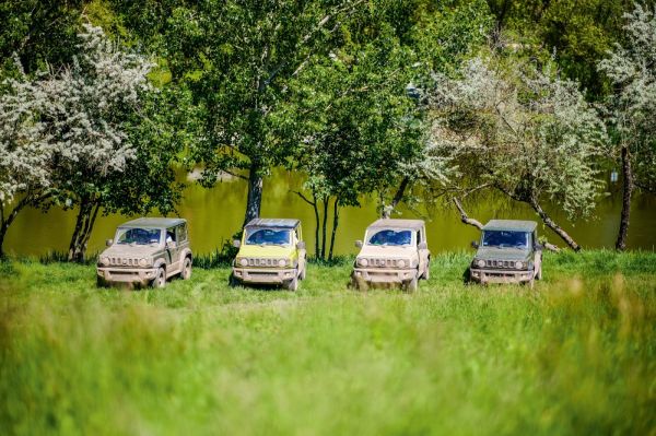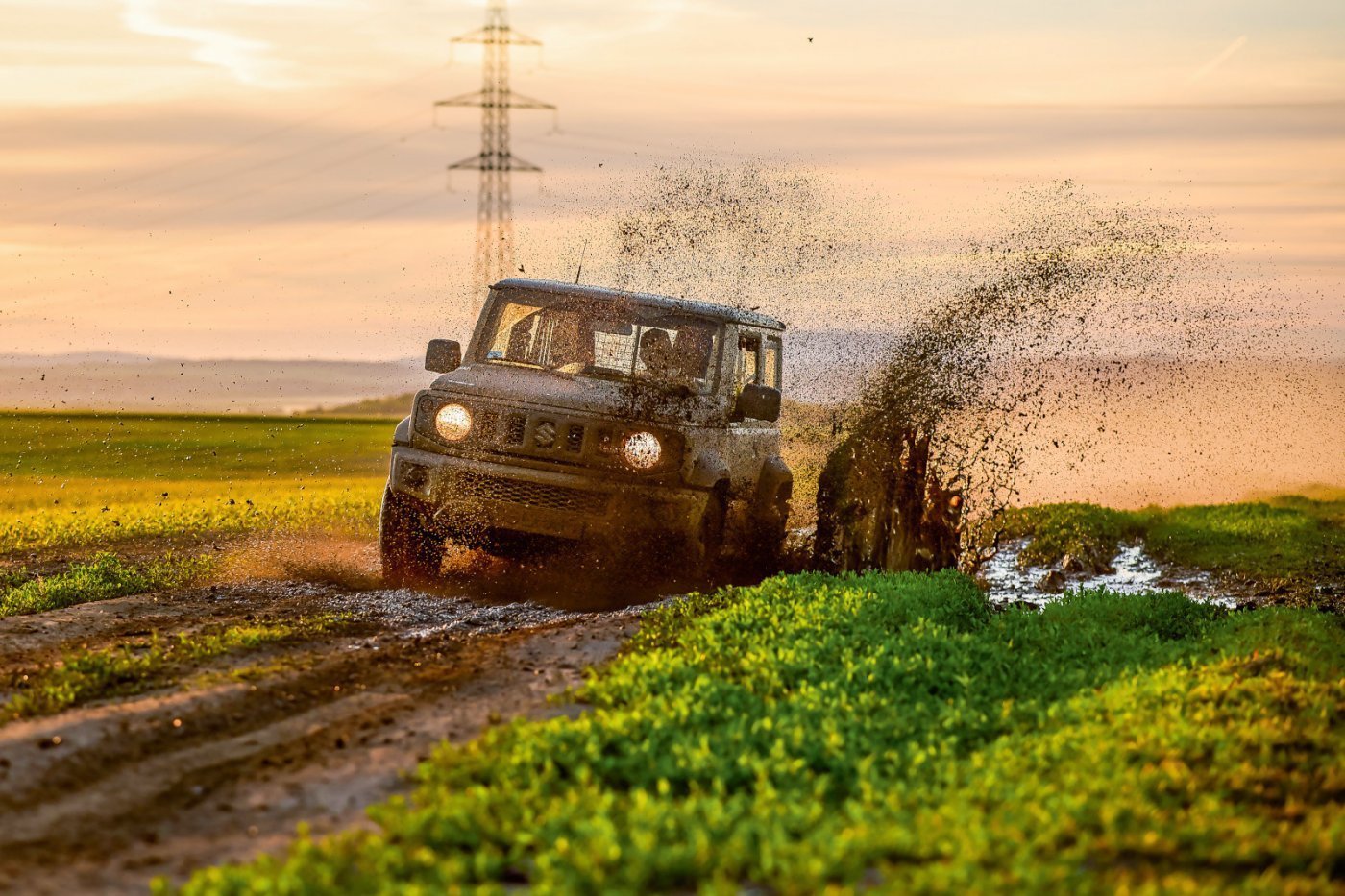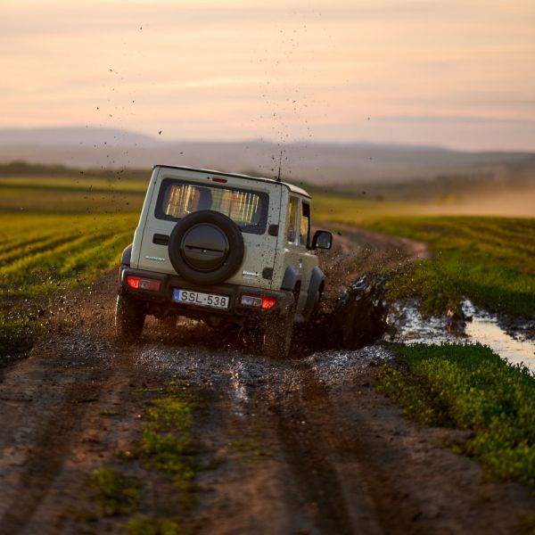 A Jimny Van hazai próbája során Herceghalom–Etyek viszonylatban közlekedtünk földutakon, a pár nappal korábbi esőknek köszönhetően nem volt hiány a sárból sem. Felvezetőautóként egy Vitara ment előttünk, amely egészen jól bírta a kiképzést, de a nagy pocsolyákat a szántóföldön kerülte, és az aljáról lelógó növények jelezték, hogy a hasmagassága sem ideális az ilyen igénybevételhez. Ehhez képest a Jimny természetesen veszi az ilyen akadályokat, csak arra kell ügyelni, hogy a tempó miatt nem csak az autó, de annak csupa kemény felülettel körbevett utasterében az emberek is pattognak. Nem csak javallat, de létszükséglet a kapaszkodás….