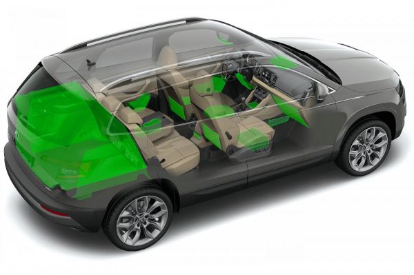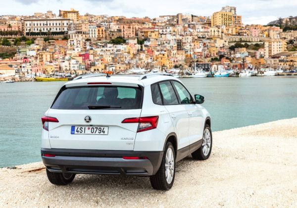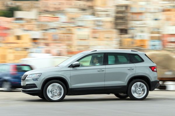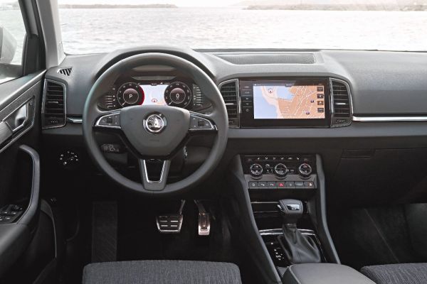 A vezetőülésben helyet foglalva ismerős környezet fogadja az embert, épp csak annyi a változatosság, hogy a műszerfal tetején vagy zárt tároló, vagy a Canton hifi rendelése esetén hangszóró található. Az összes kipróbált autóban a legnagyobb, 9,2 colos képátlójú érintőképernyős fejegységgel találkoztam, alaphelyzetben kisebb kijelző és amellett „gyors” menügombok találhatók a középkonzol tetején. A kezelőszervek kis erővel működtethetők, egyedül a kézi kapcsolású váltónál tapasztaltam némi akadást, és azt, hogy határozott kézzel kell vezetni a kart. Összesen háromféle futóműhangolást készítettek a Karoqhoz, egyet a fronthajtású, egyet az összkerekes változatnak, a harmadik pedig az elektronikusan vezérelt lengéscsillapítású példányoké – utóbbi esetben az összkerékhajtás adott. A Karoq felfüggesztése a 18 colos felnik ellenére még rossz minőségű, kátyús úton is jól kirugózta az úthibákat, s kanyarban sem dőlt túlságosan a felépítmény. Annyi támpontot ad a műszaki tartalommal kapcsolatban a megjelenés, hogy az összkerékhajtású változatoknál a kerékjárati ívekre is jut egy keskeny fekete műanyagperem.
