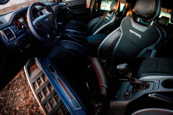 A Ranger Raptor Special Edition dupla kabinos kivitelben készül, és az utastér egyedi, sportos hangulatáról a kormánykerék, a műszerfal és az ajtóburkolatok vörös varrásai gondoskodnak. A Ford Performance mérnökei úgy tervezték meg a bőrüléseket, hogy azok a kemény terepen és a tüköraszfalton egyformán kényelmesek legyenek és tökéletes megtámasztást adjanak. Az autó exkluzív jellegére a kizárólag a Special Edition kivitelhez kapható Raceway Grey műszeregység teszi fel a koronát.