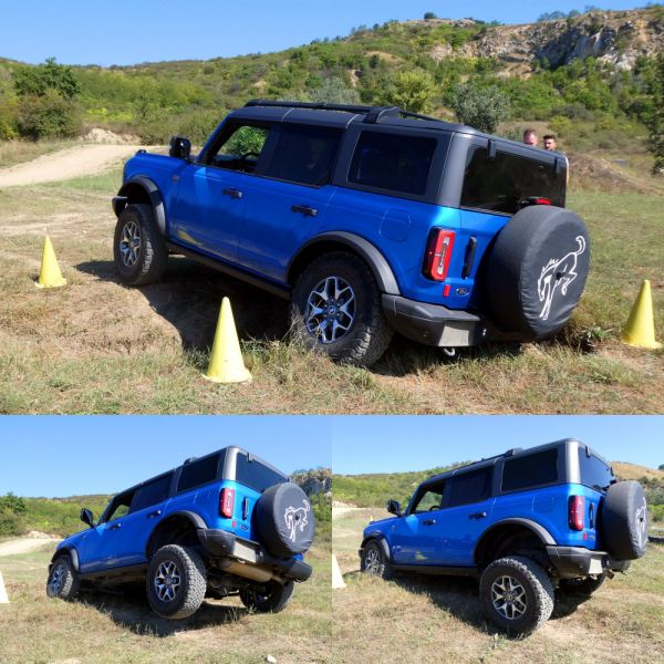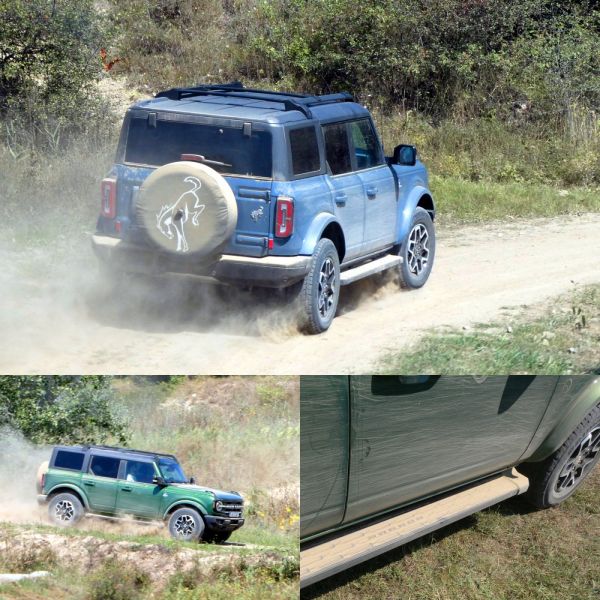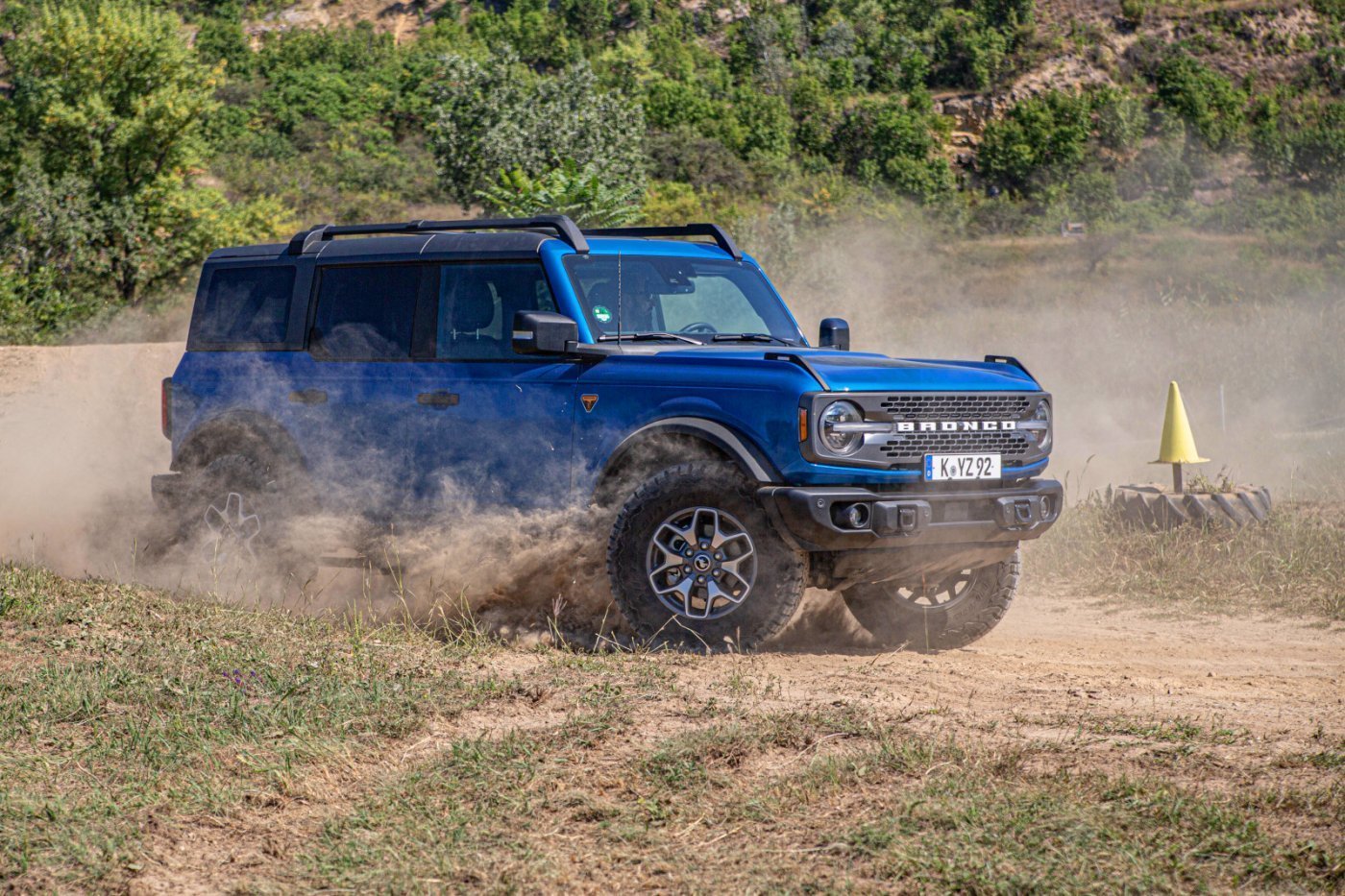 Nem egyszerűen Ranger-alternatíva az annak az alvázát és technikáját megöröklő Ford Bronco, így szabadidő-autókhoz képest aszfalton nyersebb viselkedést kapunk, hiába jó az úthiba-elnyelő képessége a futóműnek, a merev hátsó híd pattog az úthibákon. A retrós arc mögött szétszerelhető karosszériát találunk, némi odafigyeléssel és segítséggel kevesebb, mint 10 perc alatt lehet nyitottá varázsolni a karosszériát (tető és ajtók), nagyjából ugyanennyi idő az összerakás. Az ajtók tárolására a gyári tartozékok között találunk a zsákokat, a műanyag tetőhöz nincs ilyesmi. Az ajtókra egyébként is figyelni kell, mert a zsanérok az első sárvédő takarásában helyezkednek el, könnyű odaütni a fényezett lemezhez a fényezett lemezt.