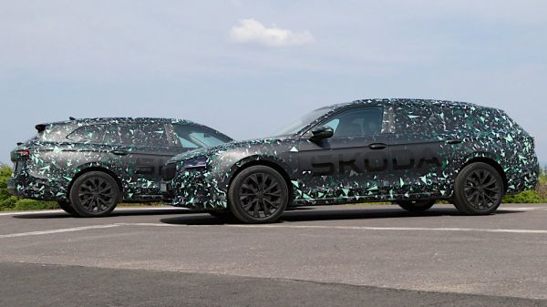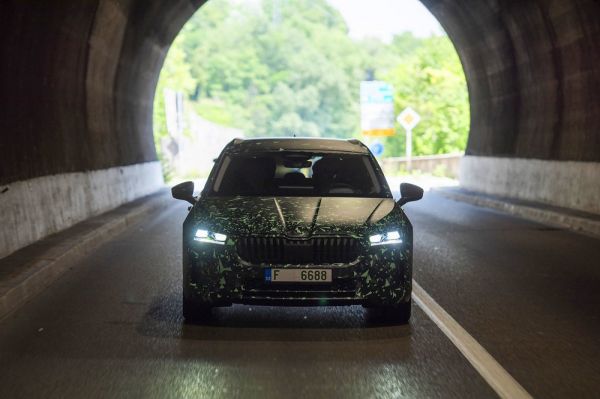 Megnövelik a karosszéria hosszát 4 centivel, így már 645-690 literes (5 ajtós-kombi) a csomagtér mérete alaphelyzetben, az utastér méretére eddig se volt panasz, ezután se lesz. Fontos változás, hogy a kombi immár elektromosan a tetőre felszaladó kalaptartót kap, ami megkönnyíti a ki- és bepakolást – főleg, ha eleve a kéz nélküli ajtónyitást használja az ember, mert tele van a keze a csomagokkal. A visszafogottság jegyében itt is igyekeztek lemondani a fényesen csillogó krómról, ahol csak lehetséges volt, így tettek, de például a hűtőrácsnál muszáj volt azt megtartani. Amíg a Kodiaq-nál az alsó légbeömlőbe került ez az érzékelő, személyautónál a vezetőtámogató rendszer radarját a hűtőrács közepére kellett elhelyezni, és a technika jelen állása szerint csak csillogó króm-látványt tudnak úgy reprodukálni, hogy az ne zavarja a radarsugarakat. Még finomabban kidolgozott kristálymotívumokkal találkozunk a LED-es lámpákban.