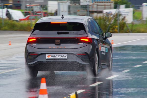 A fékpróbára egy vezetéstechnikai pálya vizes aszfaltján került sor, itt a legnagyobb problémát az jelentette, hogy a rendelkezésre álló szűk helyen kellett pontosan 50 km/órás sebességre felgyorsulni. Olyan kevés volt a hely, hogy 55 km/óránál már túlcsúszott az autó a fékezési zóna (fellocsolt terület) végét jelző bójákon. Cupra Born autókra szereltek Hankook iON Winter és 2 konkurens (Continental és Pirelli) abroncsokat, és amennyire azt a körülmények engedték (bemenő sebesség, fékezés pontosan a kijelölt ponton) látható volt, hogy a dél-koreai cég abroncsával rövidebb a fékút.